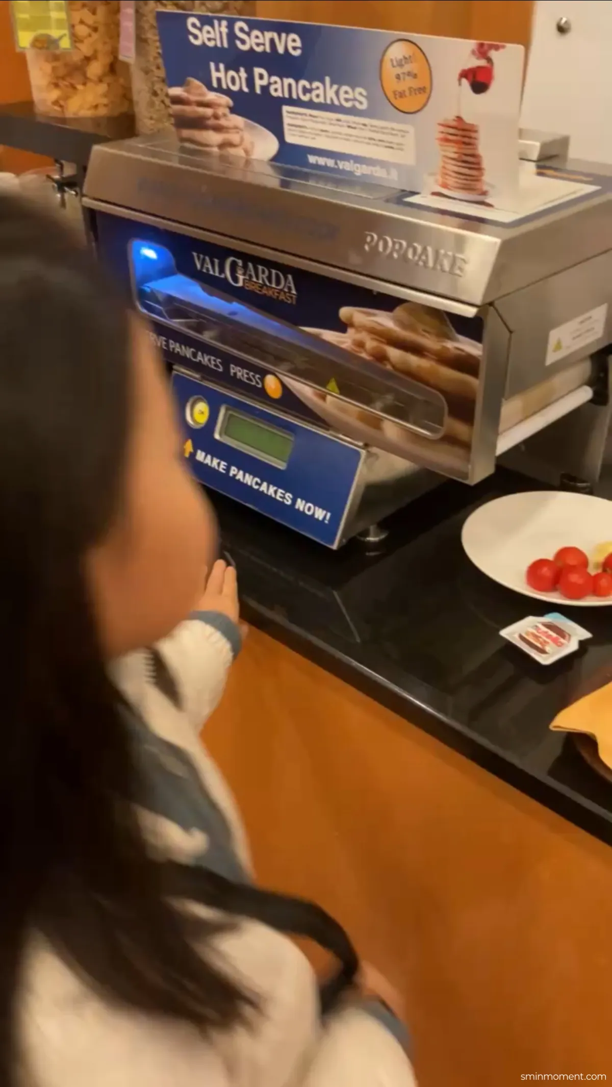 신선한 과일과 야채들이 3-4종류 있었고, 빵은 그보다 더 많은 종류가 있었지만 딸과 나는 즉석 팬케이크 제조 기계에 홀랑 빠져서 몇 번을 버튼을 눌러 만들어 먹었나 모른다. 완전 촉촉하고 따뜻해서 더 좋았었던 듯. 커피와 찰떡궁합이었다.