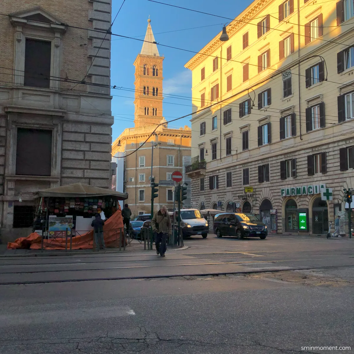 호텔 예약 때부터 알아봐 놨던 산타 마리아 마조레 대성당이 도보로 단 4분 거리 내에 있었는데 정말 얼마 걷지 않고도 바로 성당의 일부가 보이기 시작했다.