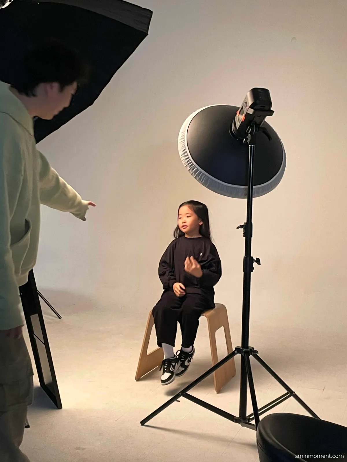 오랜만의 방문이라 처음에는 쭈뼛거리던 아이는 또래들 사진 소개도 해주고, 작년 촬영 때 나눴던 얘기들을 작가님이 꺼내니 금세 긴장을 풀고는 장난도 치더라. 우리 셋 중 젤 먼저 촬영을 시작했는데 정말 표정에 힘들어 간 것 하나 없이 자연스럽게 잘 나왔다. 흑 역시 여길 오길 잘했다 싶었던 순간.